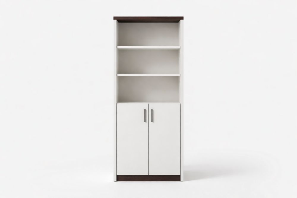 Comprend 2 étagères ouvertes et 2 portes. Les étagères ne sont pas réglables.